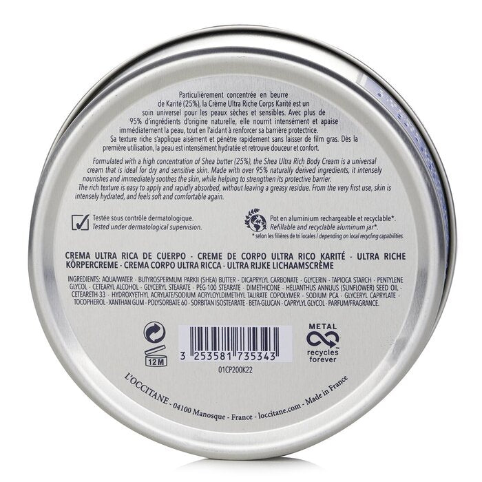 L'Occitane Shea Butter Ultra Rich Body Cream 200ml/6.9oz
